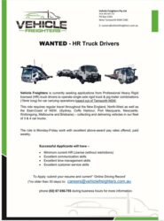 HC truck drivers needed for our family run business.Drivers must have your Workers on Foot Certificate and White Card. Call Jose Trindade on 0409 625 652 for all enquires (please do not message).
