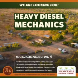 Please feel free to share. A great opportunity to experience life on a cattle station . WE ARE LOOKING FOR: HEAVY DIESEL MECHANICS Full-time roles with competitive salary packages. On-station accommodation and meals provided. Work vehicle provided for the Road Transport role. Long-term, stable work with a respectful team. Moola Bulla Station WA Apply now! […]