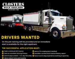 On the job training will be provided and an immediate start is available for the right applicant. The successful application must: Hold a minimum HC licence Have an excellent driving history Work 5 days a week + ½ day Saturday Above award rates paid weekly Pass pre employment medical Provide a current QLD licence […]