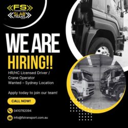 WE ARE HIRING!! HR/HC Licensed Driver – Join Our Team at FS Transport / Slab Trans GroupDue to expansion, FS Transport / Slab Trans Group is currently looking for an experienced HR Licensed Driver to join our team. This is a flexible and ongoing role, and we are seeking candidates who are Sydney-based. What we […]