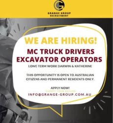 HC / MC DRIVER WANTED – START ASAP We’re urgently seeking an experienced HC / MC Driver for remote work departing from Darwin. What’s on offer: – Immediate start – Flights from Darwin provided – Meals & accommodation included – Great team & long-term opportunities If you’re reliable and ready to start straight away — […]