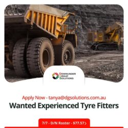 Apply Now – tanya@dgsolutions.com.au Wanted Experienced Tyre Fitters 7/7 – D/N Roster – $77.57 Downunder Group Solutions