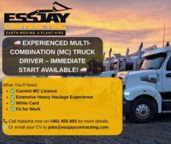 Now Hiring: Experienced Multi-Combination (MC) Truck Drivers – Immediate Start! Essjay Contracting is seeking a skilled and reliable MC Truck Driver to join our dynamic team in Rockhampton. If you have a proven track record in heavy haulage and are ready to take on challenging and rewarding work, we want to hear from you! What […]