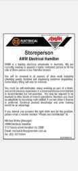 Storeperson AWM Electrical Hamilton AWM is a leading electrical wholesaler in Australia. We are currently seeking to appoint a highly motivated person to fill the role of Store person in our Hamilton branch. The role consists of all aspects of store work including receiving stock, picking orders and providing customer dispatches. Some heavy lifting will […]