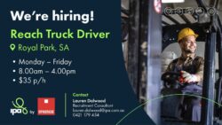 JOB OPPORTUNITY IPA is seeking a qualified reach truck driver for an asap start. Location – Royal Park Hours – Mon- Fri 8am – 4pm Payrate $34.00 Apply now by sending your resume to lauren.dalwood@ipa.com.au We’re hiring! Reach Truck Driver Royal Park, SA Monday – Friday 8.00am – 4.00pm $35 p/h Contact Lauren Dalwood Recruitment […]