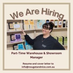 We Are Hiring Part-Time Warehouse & Showroom Manager Resume and cover letter to info@nougatandnice.com.au