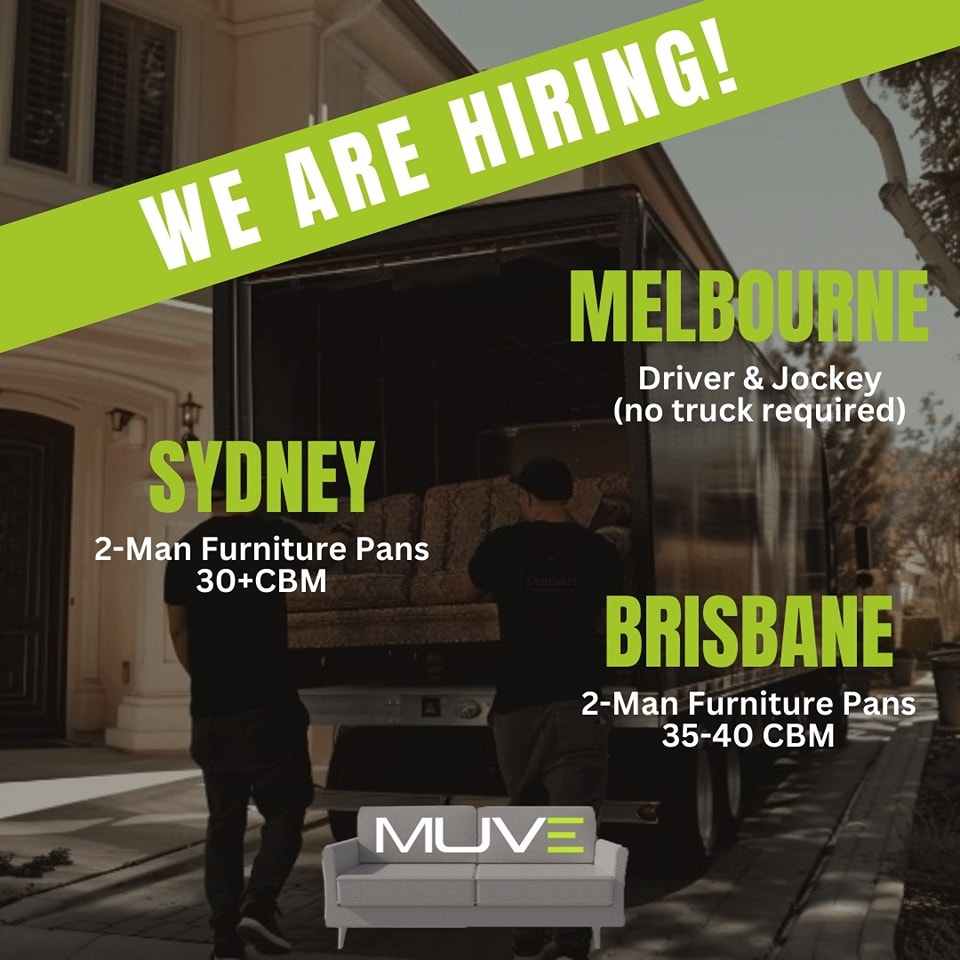 Are you a dynamic duo with a passion for furniture moving? MUVE Logistics is seeking 2-man furniture crews equipped with Pantech trucks to join our team in Melbourne, Sydney, and Brisbane!