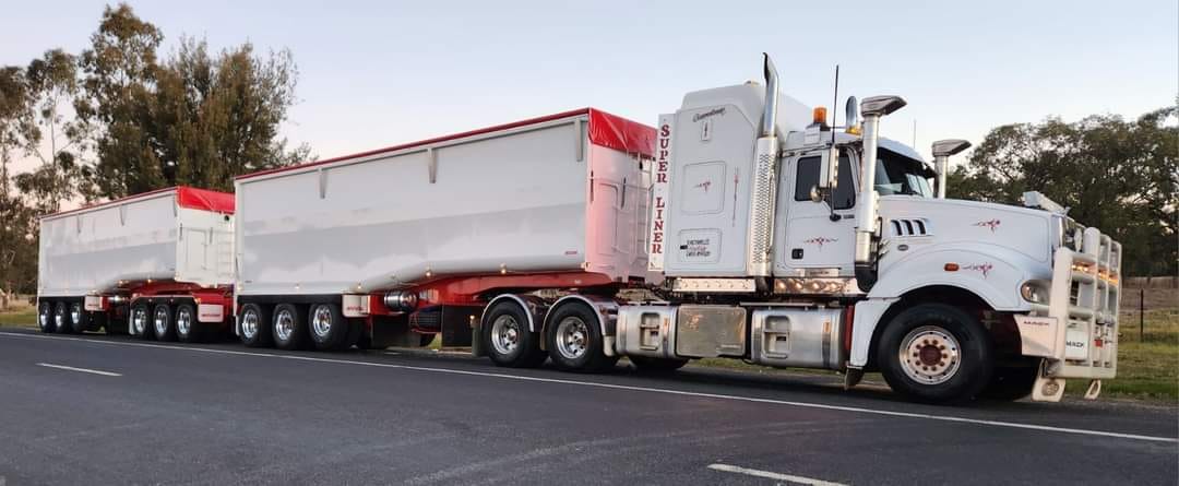 Job in question is in an Mack Superliner with Mdrive Auto and Adouble behind it. New model moores trailers (as per picture).
