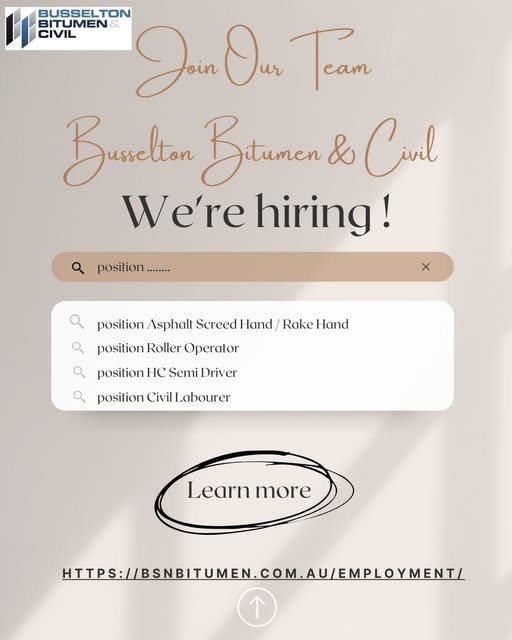 Job Tags:BUSSELTON, Busselton Bitumen Service & Civil, No Drivers Licence.