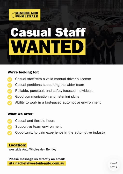 Seeking reliable, safety-focused casual staff with valid driver's license for fast-paced wholesale environment.