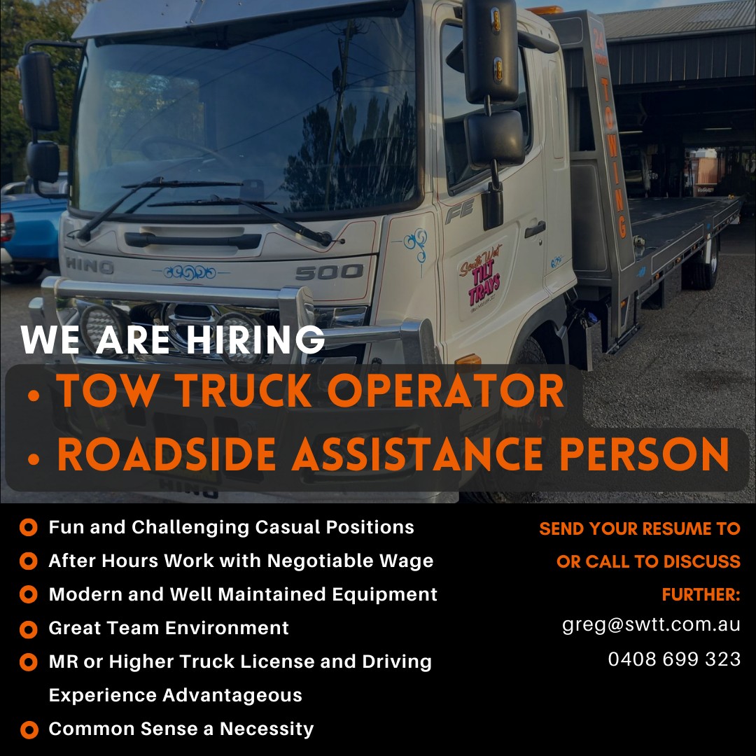 Exciting New Opportunities are Awaiting You... SWTT ARE HIRING! Casual and Part-time Positions in Towing and Roadside Assistance.