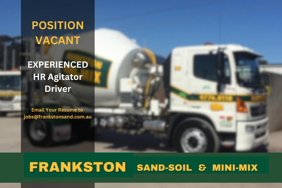 Frankston Sand Soil have a position available for a HR Agitator driver to join our team. We are looking for a driver who is passionate about safety, results focused and have a strong work ethic.