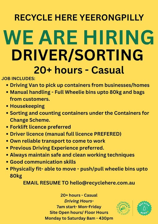 Job Tags:Recycle Here BNE, YEERONGPILLY.