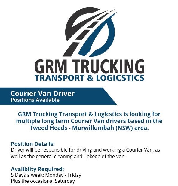 GRM Trucking Transport & Logistics is looking for multiple long-term Courier Van drivers based in the Tweed Heads – Murwillumbah (NSW) area.