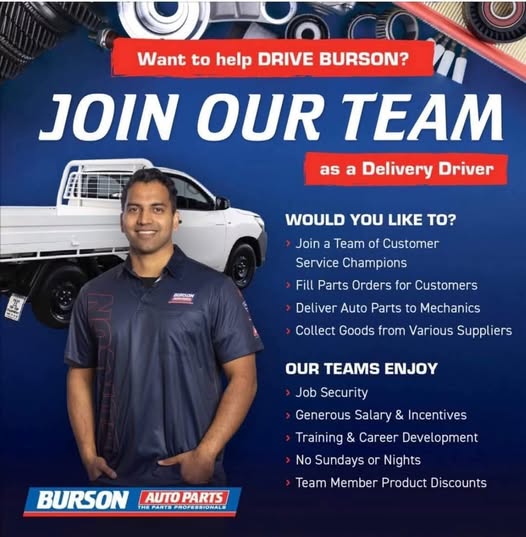 Delivery Driver/Salesperson at Burson Auto Parts: Deliver auto parts, collect goods, and provide customer service with job security, generous salary, and training opportunities.