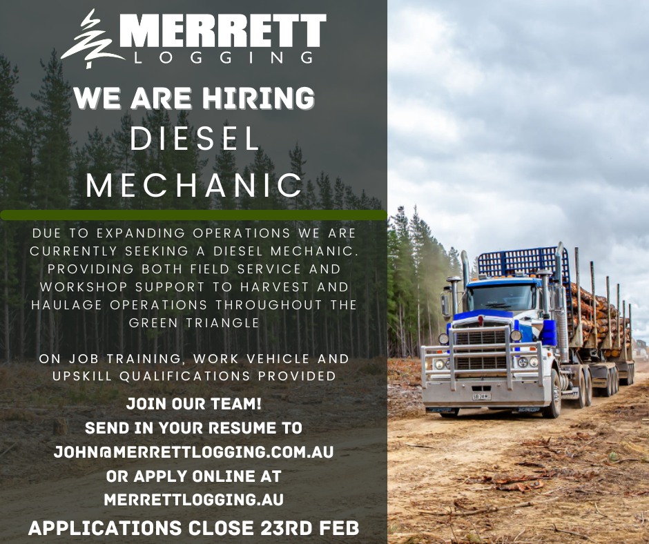Join Our Team - Diesel Mechanic Wanted at Merrett Logging