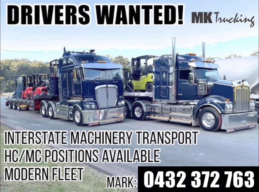 An exciting opportunity has become available for a HC driver with machinery experience to join the MK Trucking team based in either Melbourne or Adelaide.