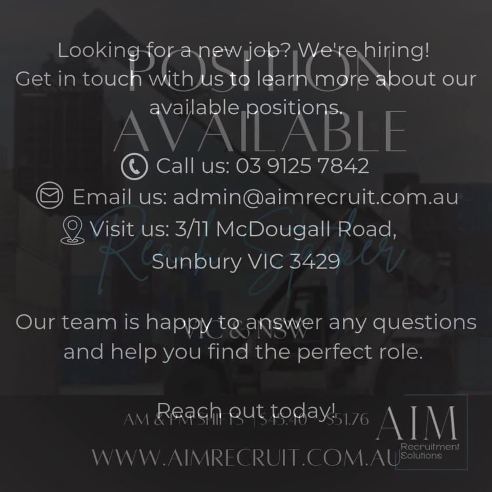 Send your resume: **admin@aimrecruit.com.au**