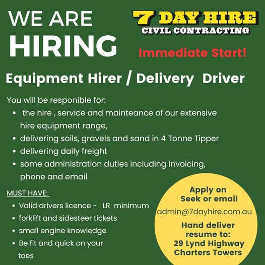 Equipment Hire Delivery Specialist ( 7 Day Hire Charters Towers & Totalspan )