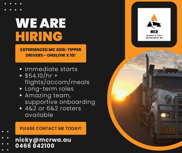 EXPERIENCED MC SIDE-TIPPER DRIVERS – ONSLOW X 10!