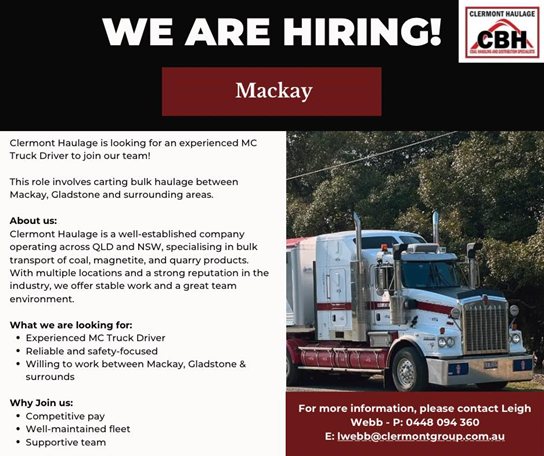 Clermont Haulage is looking for an experienced MC Truck Driver to join our team!