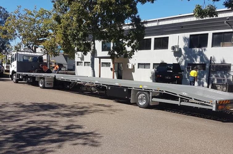 The truck is an MR truck with a 2 car trailer behind, carrying 3 cars all up.