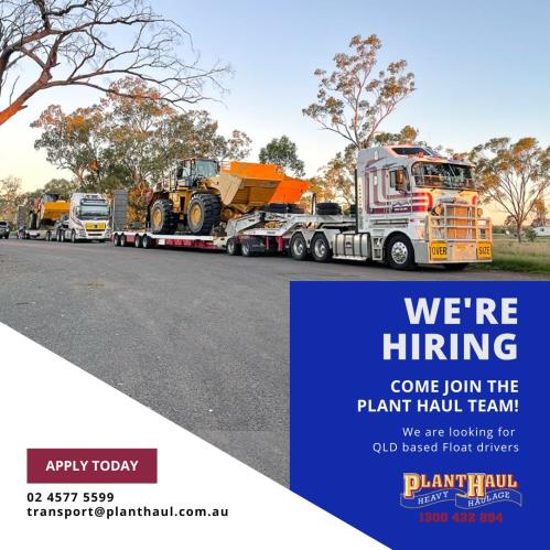 We're Hiring! As we continue to expand and win significant projects Plant Haul is looking for a QLD-based float Driver with extensive experience in Heavy Haulage.