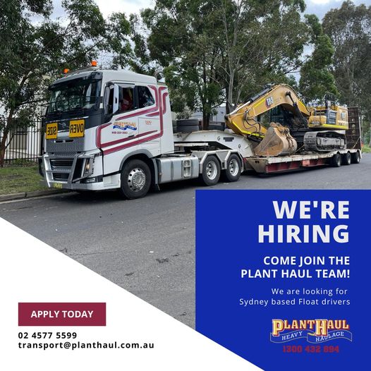We're Hiring! As we continue to expand and win significant projects Plant Haul is looking for a Sydney based Float Driver with extensive experience in Heavy Haulage.