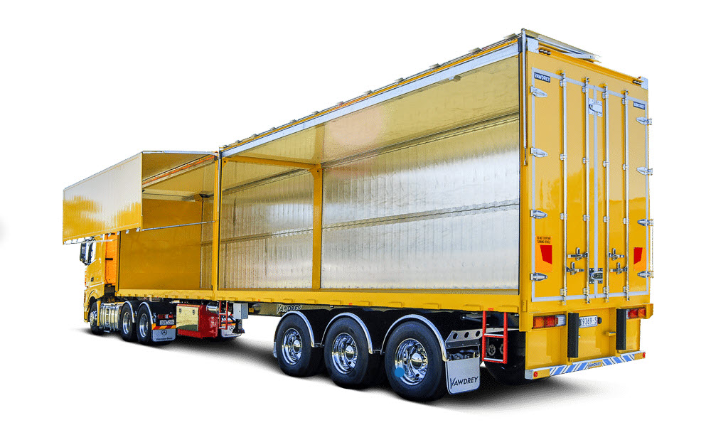 Trailer is a Wingliner, no straps, no clips just push a button to open and close trailer for unloading and loading.