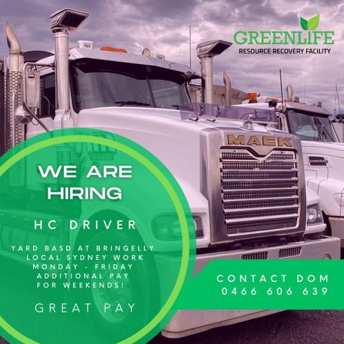 Looking for HC Driver to join our team! Yard based at Bringelly