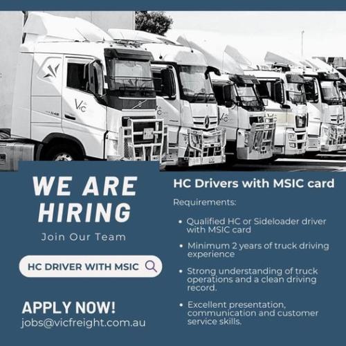 Job Tags:BROOKLYN, Containers, Driving, HC Licence, HC Semi,Heavy Combination,Prime Mover,Semi Trailer,HC Driver,semi driver,semi driving,HC Truck,HC Truck Driver, Local Work, MSIC Card, Regional,Country, Sideloader/Swinglift,sideloader,side loader,swinglift,swing lift,Hammar,Steelbro, skel, Transport & Logistics, truck driver,truck driving,truck drivers,drivers, Vic Freight.