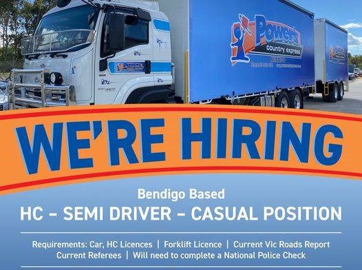Power's Country Express are on the look out for a Semi Driver to work on a casual basis as required.
