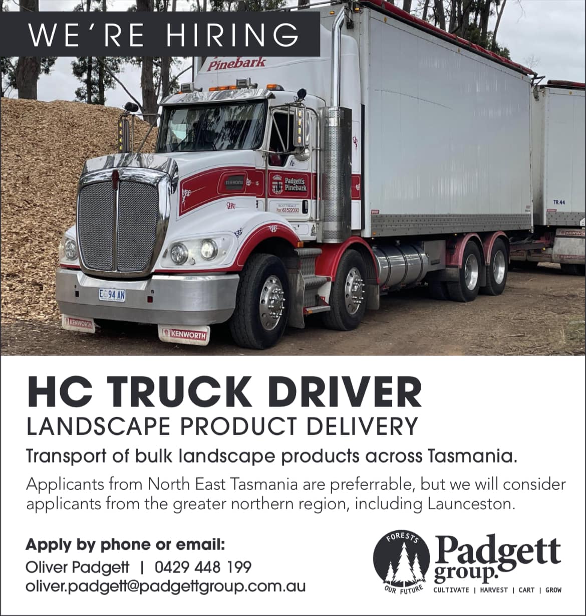 We're HIRING! HC truck driver. Landscape product delivery. Transport of bulk landscape products across Tasmania.