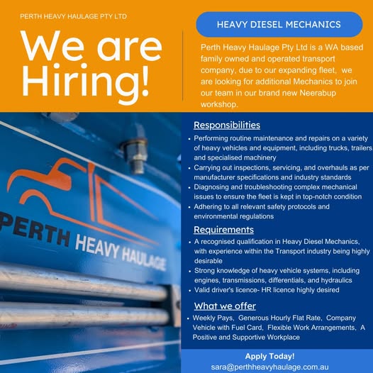 WE ARE HIRING Looking for multiple HD Mechanics to join our team at our new premises in Neerabup.