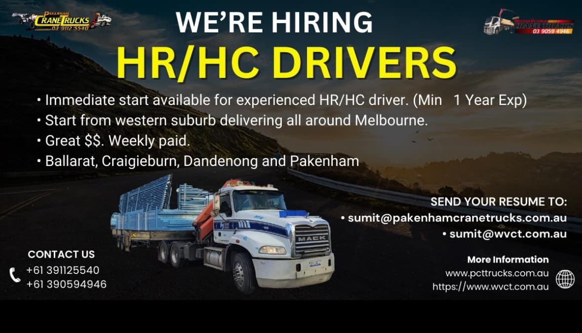 Job Tags:HC Licence, HR Licence, PAKENHAM, Pakenham crane trucks.