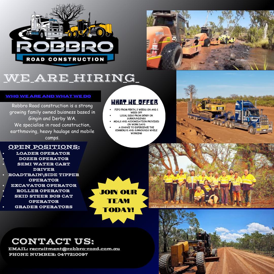 Robbro Road Construction are HIRING! We are on the look out for the right motivated applicants to join our fun and friendly team!