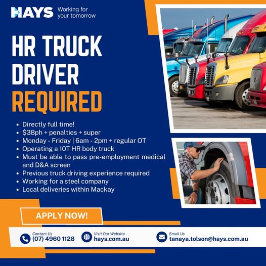 Truck driver needed for steel company, operating 10T HR body truck, $38ph + penalties + super.