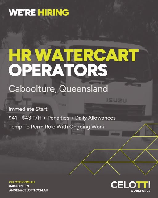 "Join Cellotti as a Temp/Perm HR Watercart Operator in Caboolture, QLD, earning $41-$43/hour + benefits."
