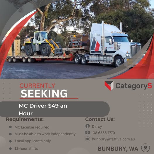 Category 5 is currently seeking experienced MC Drivers for the Bunbury/Collie Region.