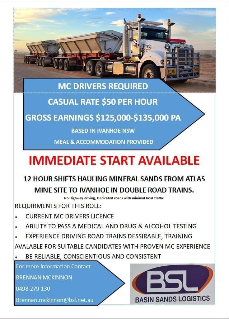MC Drivers Required-32524 ( Basin Sands Logistics P/L )