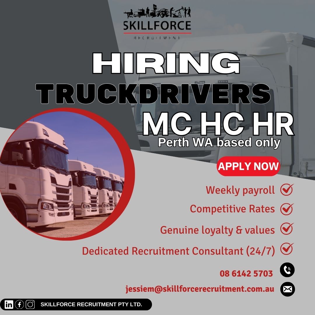 Skillforce have a number of roles available and upcoming forMC/HC & HR Drivers for Perth and Regional work.