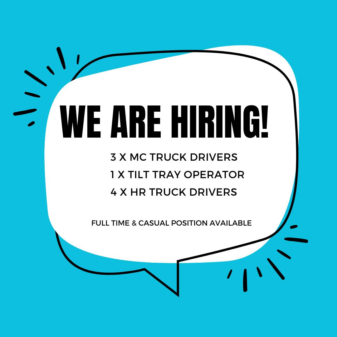 WE ARE HIRING! Multi-combination, Heavy rigid & Tilt tray operator positions available.