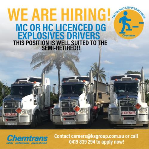 MC or HC Licenced DG Explosives Driver-23734 ( K&S Freighters )