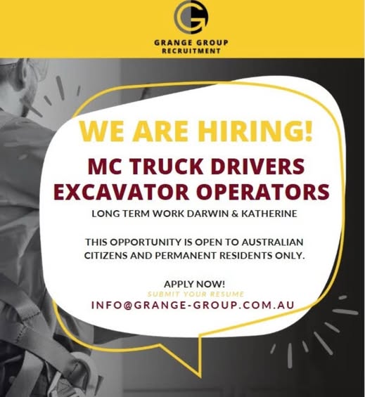 Experienced MC truck drivers and excavator operators needed for long-term work in Darwin & Katherine regions, with competitive pay and ongoing opportunities.