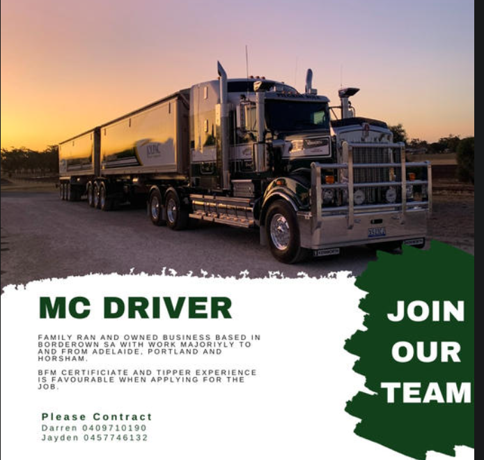 Family run and owned business based in Bordertown SA with work majority to and from Adelaide, Portland and Horsham.