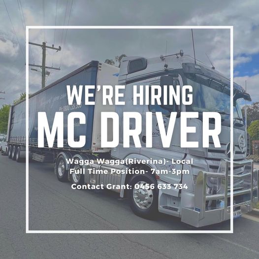 Full time position – Wagga Wagga local (Riverina) deliveries 7am-3pm with overtime.