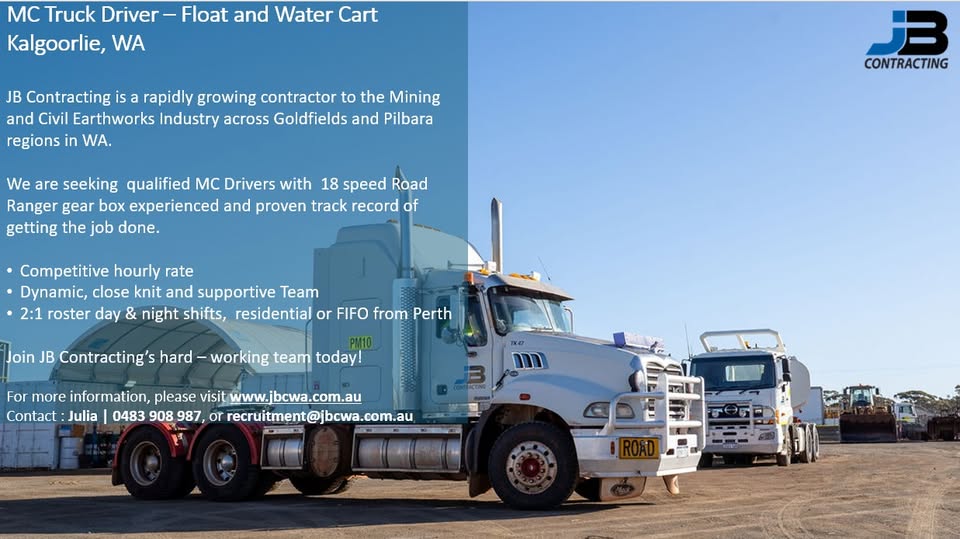 MC Truck Driver needed for Kalgoorlie, WA. Competitive hourly rate & dynamic team with 18 speed experience required.