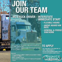Experienced MC truck driver needed for interstate work, offering flexible hours and above award km rate.