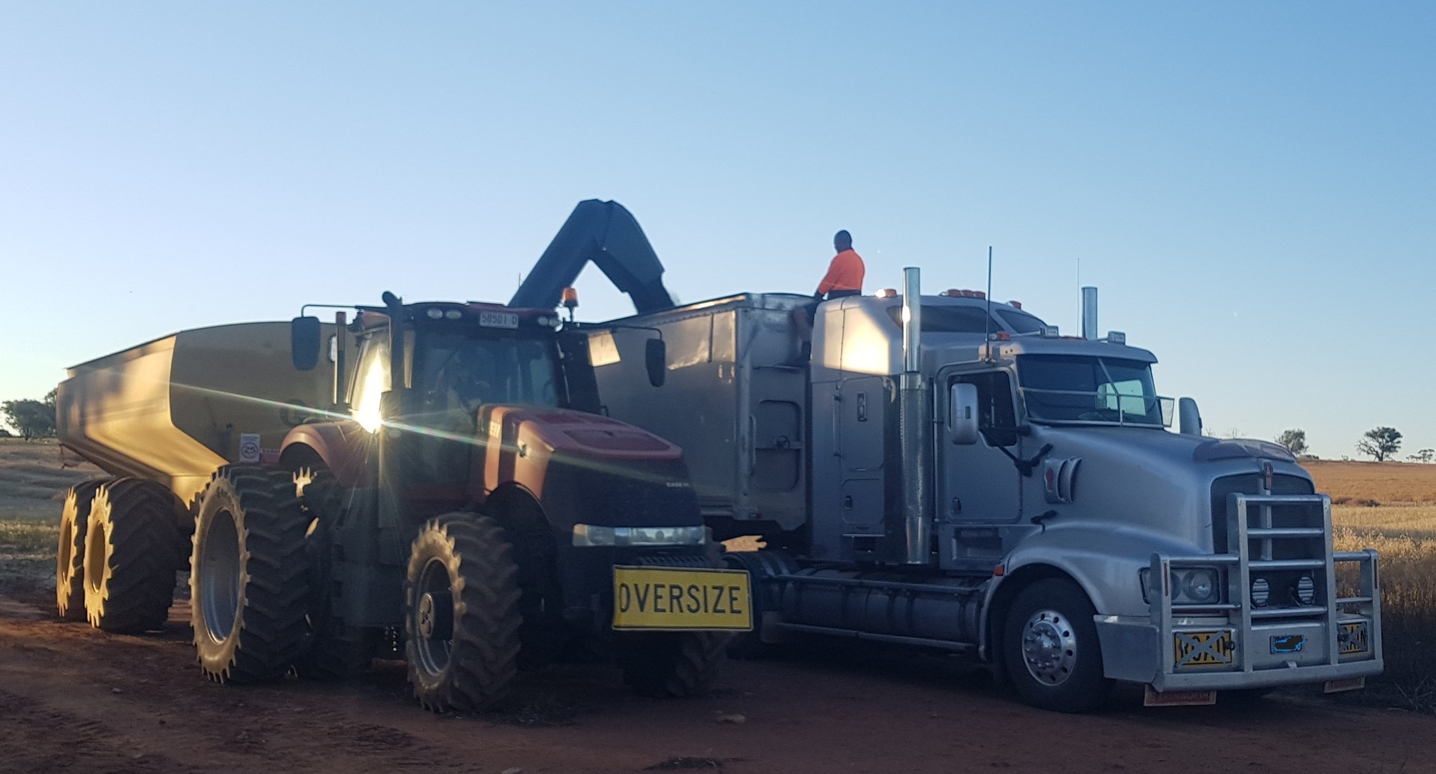Delivering grain from on-farm storage to local grain buyers within the Riverina.