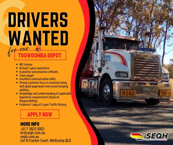 Calling all MC Truck Drivers in Toowoomba! Join our growing team. Apply now!